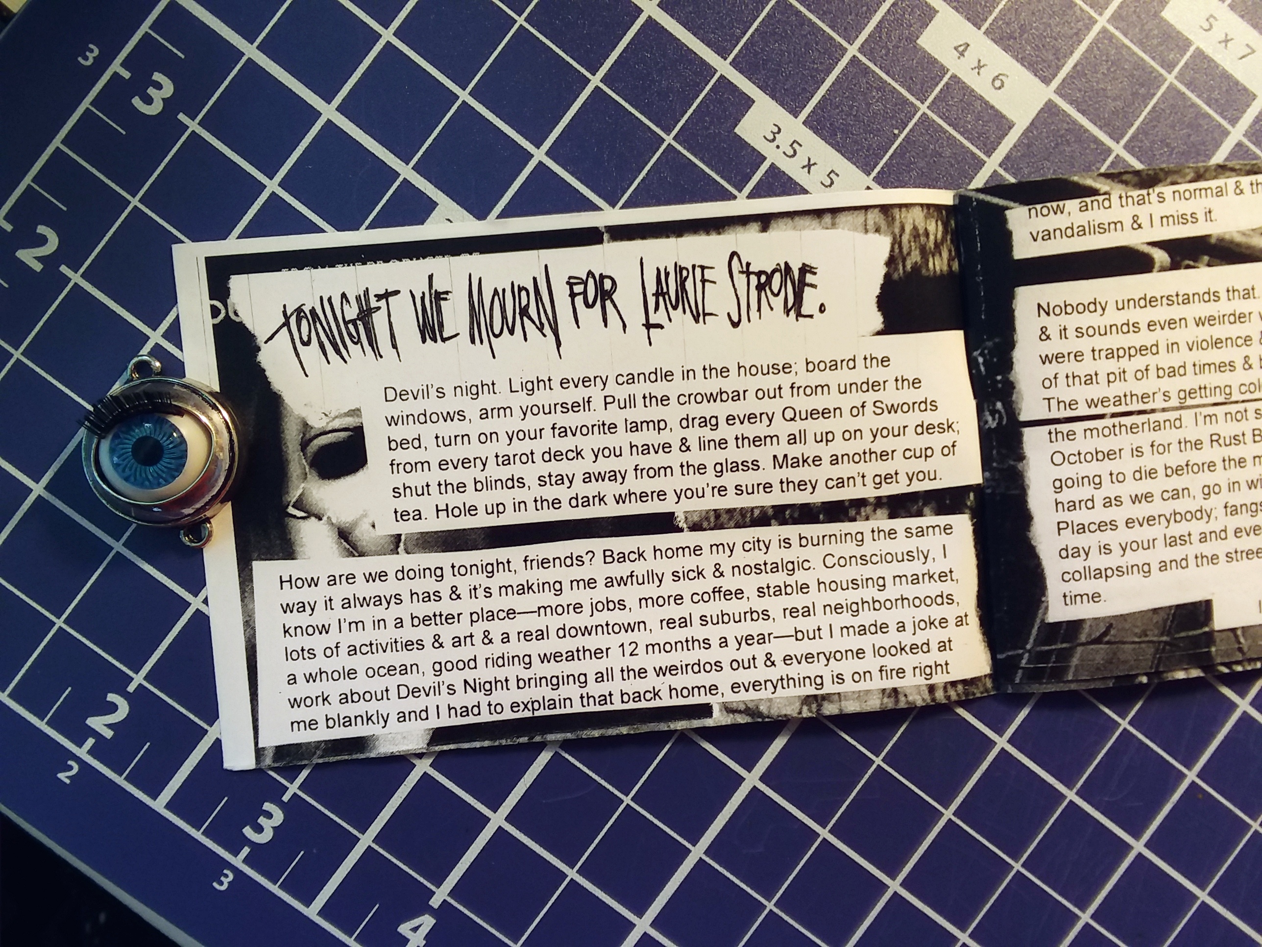 Here's a fun (and by fun I mean awful) little zine about Devil's Night, responses to trauma, surviving, paranoia, local geography, and the unkillable strength of Laurie Strode. It's about relating to the new Halloween movie as a person with untold baggage & feeling cheated by your experiences.