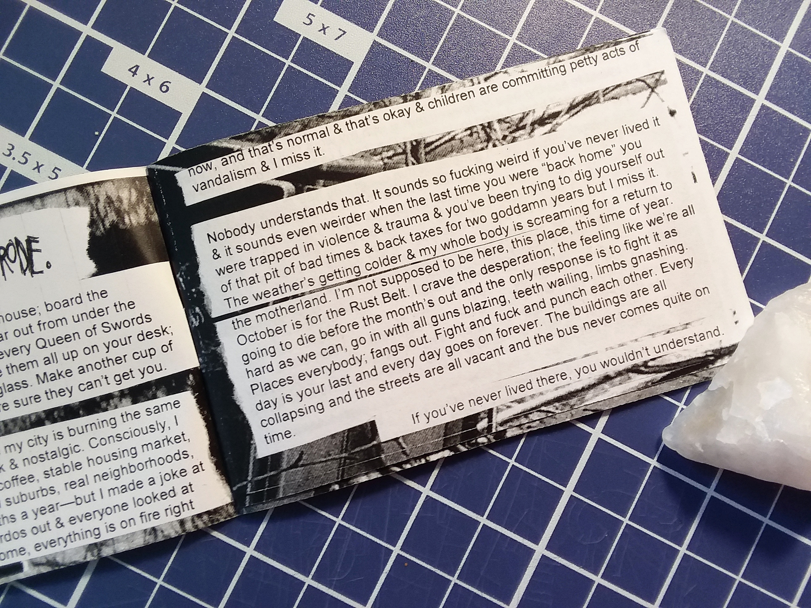 16 pages, mini size (2.75" x 4.25"), b&w, typed, photocopied with love & anger.