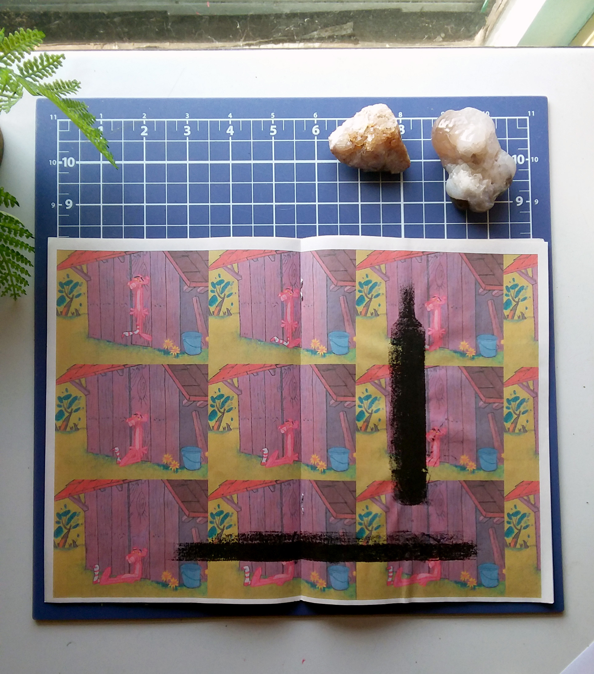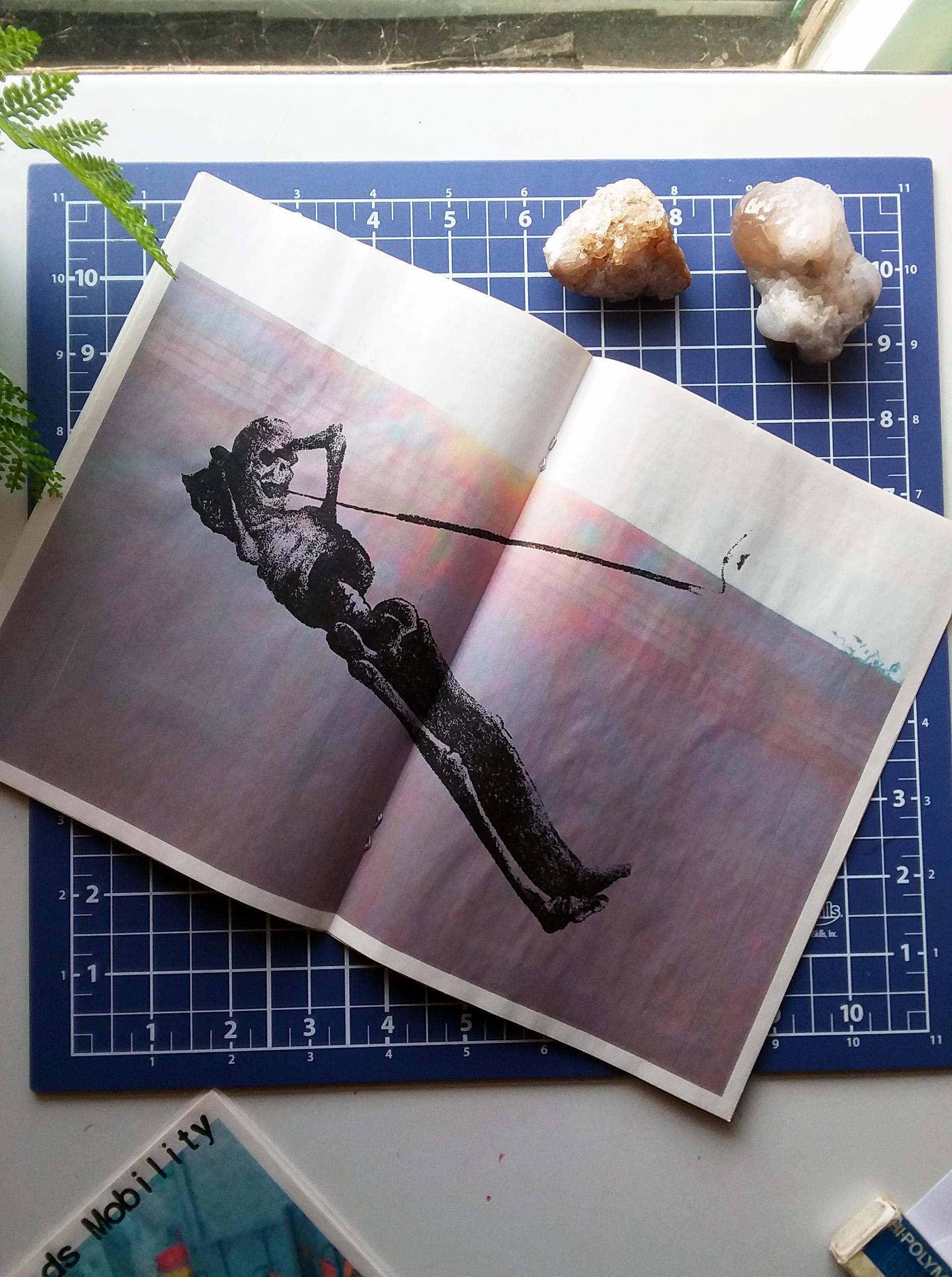 This zine is A5 size (5.75 x 8.25"), 16 pgs per issue, typed, mixed b&w/color with hand-printed covers and centerfolds.