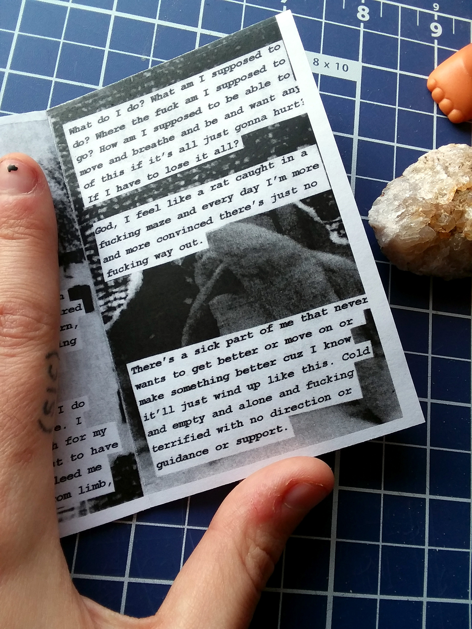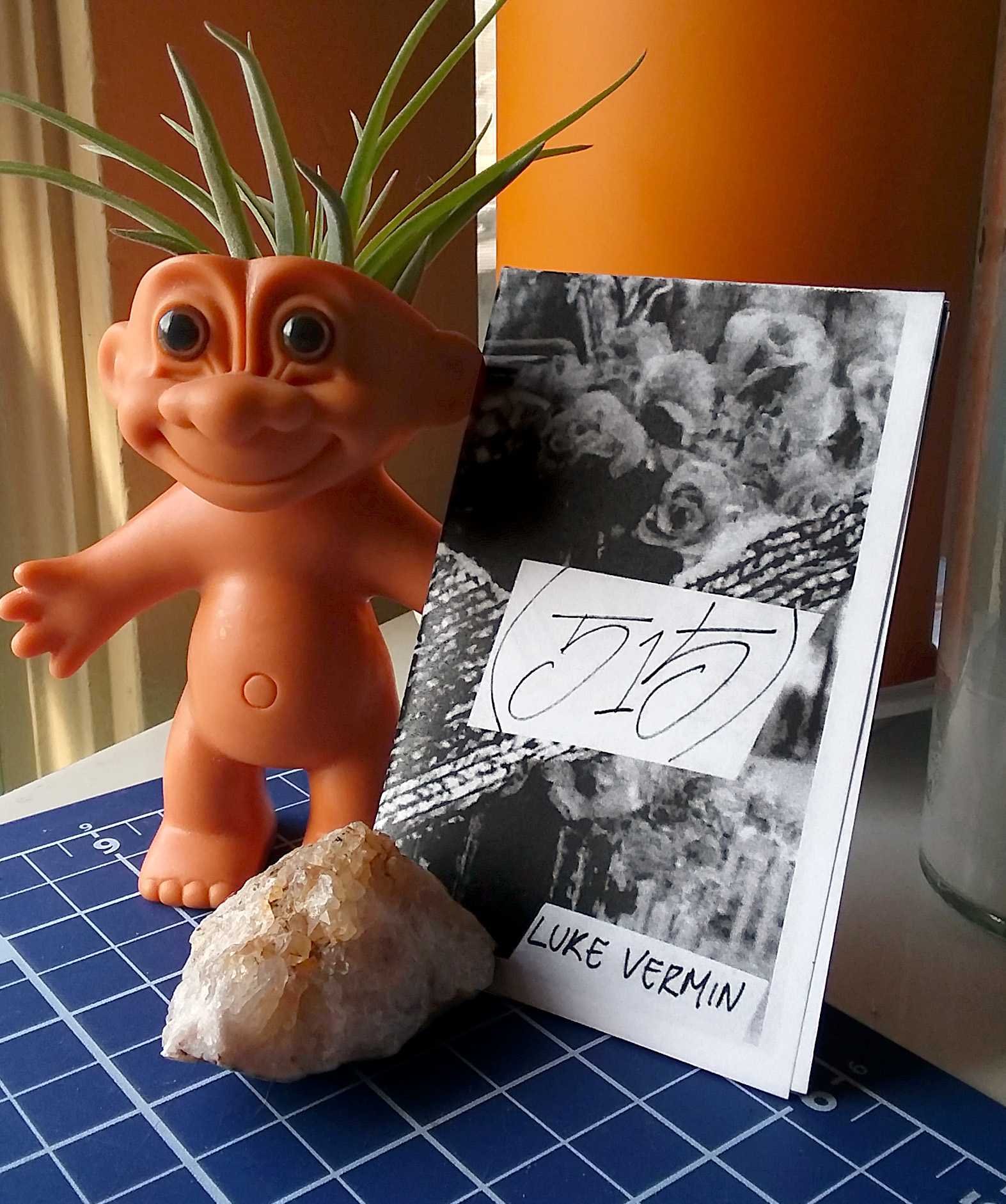 by Luke Vermin. 8 pgs. Mini size (2.75 x 4.25"). Typed, fully collaged. Center folds out into a wicked cool print!!