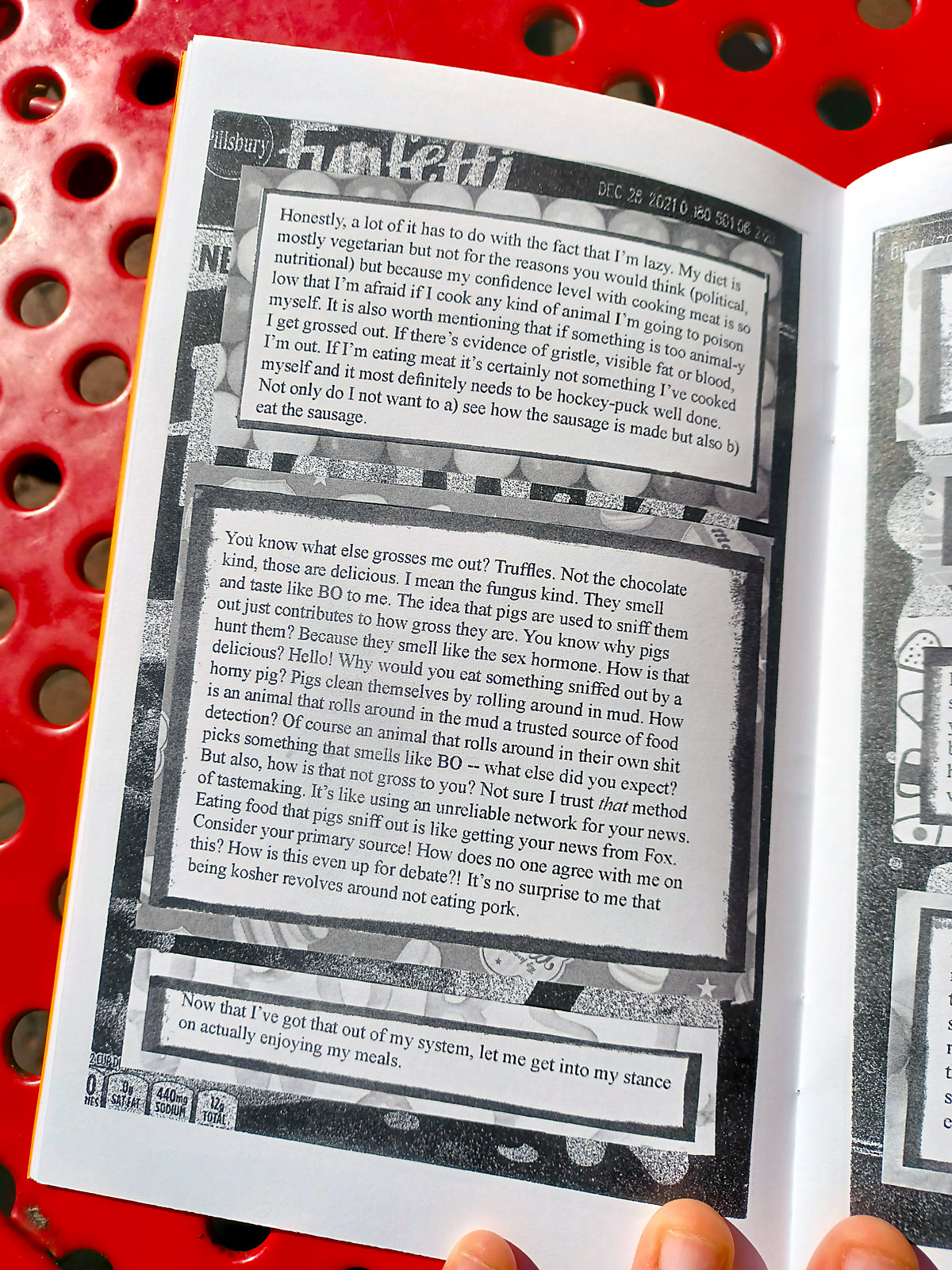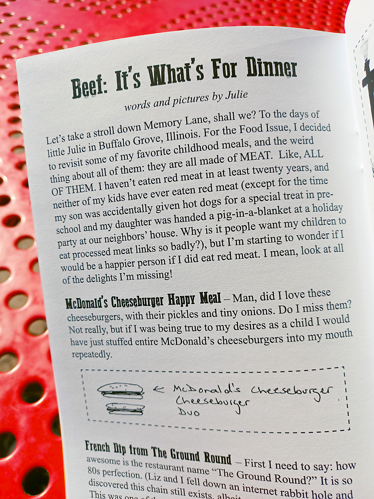By Liz Mason & Julie Halpern. This zine is 44 pages, half size (5.5 x 8.5"), text heavy (typed), and printed in b&w with fun clipart & flouro orange cardstock covers!