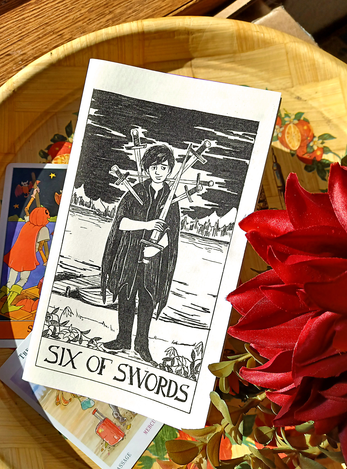 SIX OF SWORDS has stuff about the friendliness of melancholy, necessary hope, moving fantasies, Platonic numerology, tarot structure, carrying burdens, astrology and what the heck "Mercury in Aquarius" means, and much more!