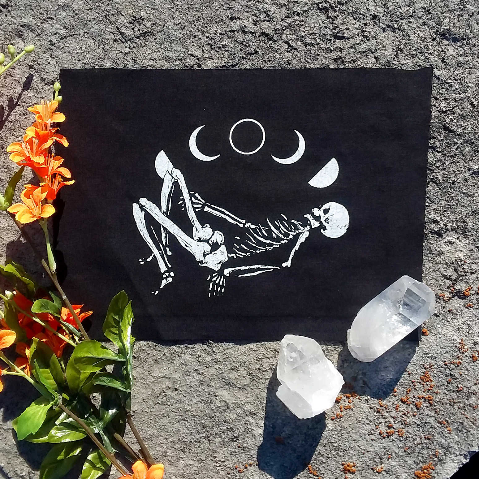Cool patch with mega witchy vibes designed & printed by VeganPatches! White ink on black fabric, heat set, water safe (so wash your pants, you crusty).