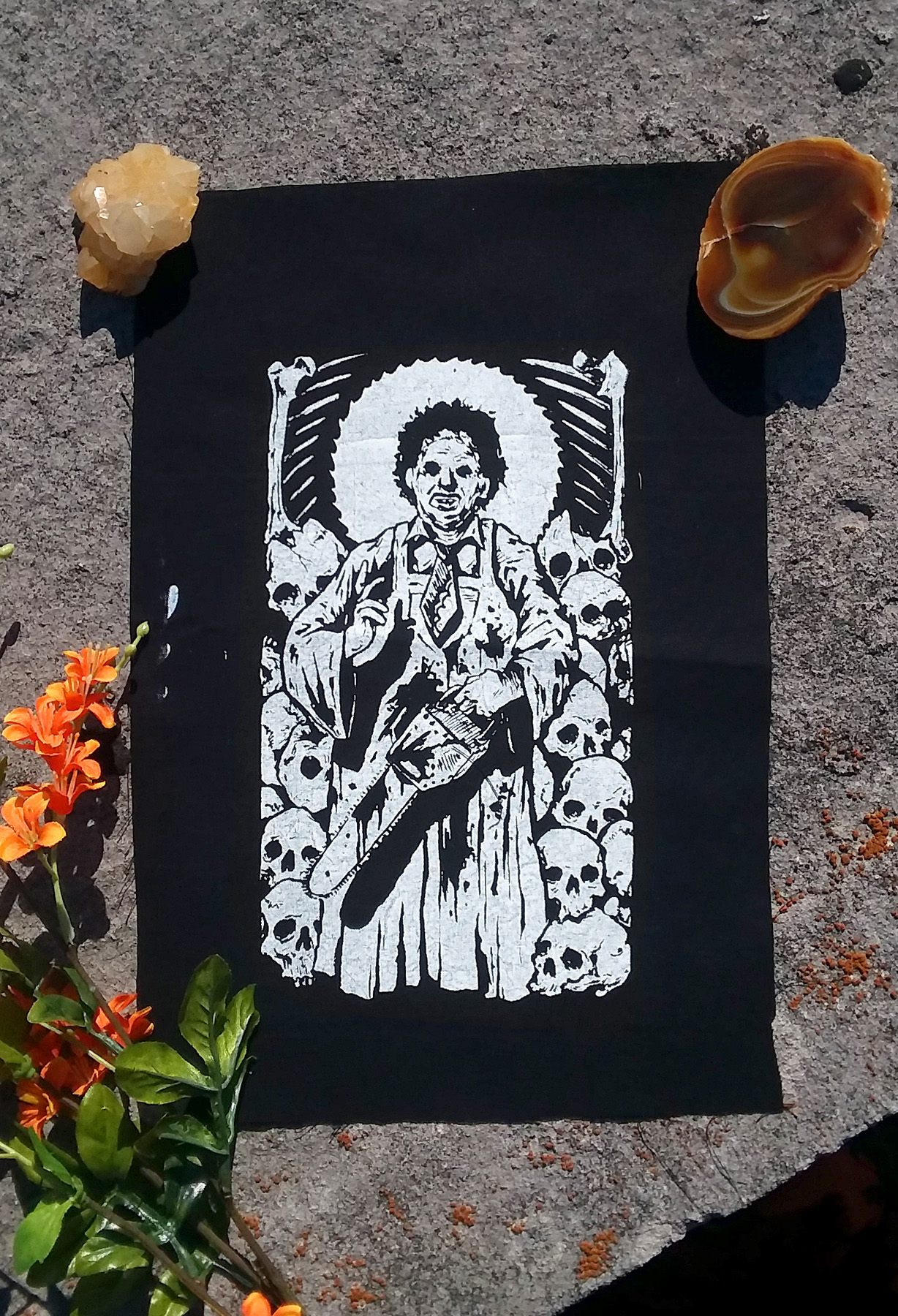 Way bigger than a regular patch but smaller than a full backpatch & PERFECT for that weird panel on either side of your zipper, here comes Saint Bubba to save the day. Or your pants that have that weird hole in the thigh.