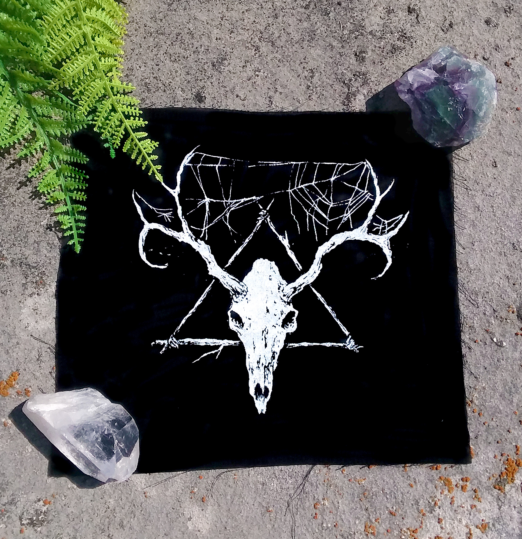 In my personal hierarchy of needs, sick deer skull with spiderwebs & branches lashed together to form a triangle that could be a triangle or could be the alchemical symbol for fire (you choose) patch is like all the levels. I am going to self-actualize through the power of sick deer skull patches.