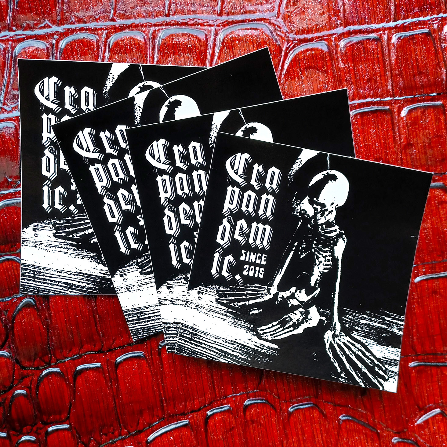 Commemorate over half a decade of the worst skeleton/best distro ever with this vinyl sticker! May this tragic little abomination bring you as much joy as he has me.