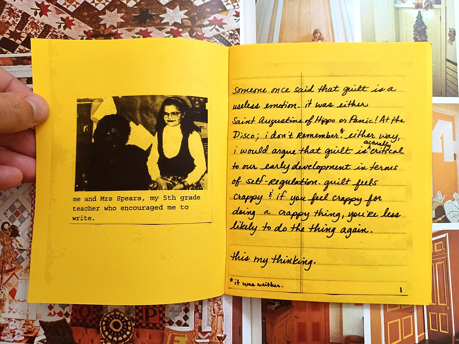 This zine is 20 pages, quarter size (4.25 x 5.5"), handwritten, and printed in b&w!