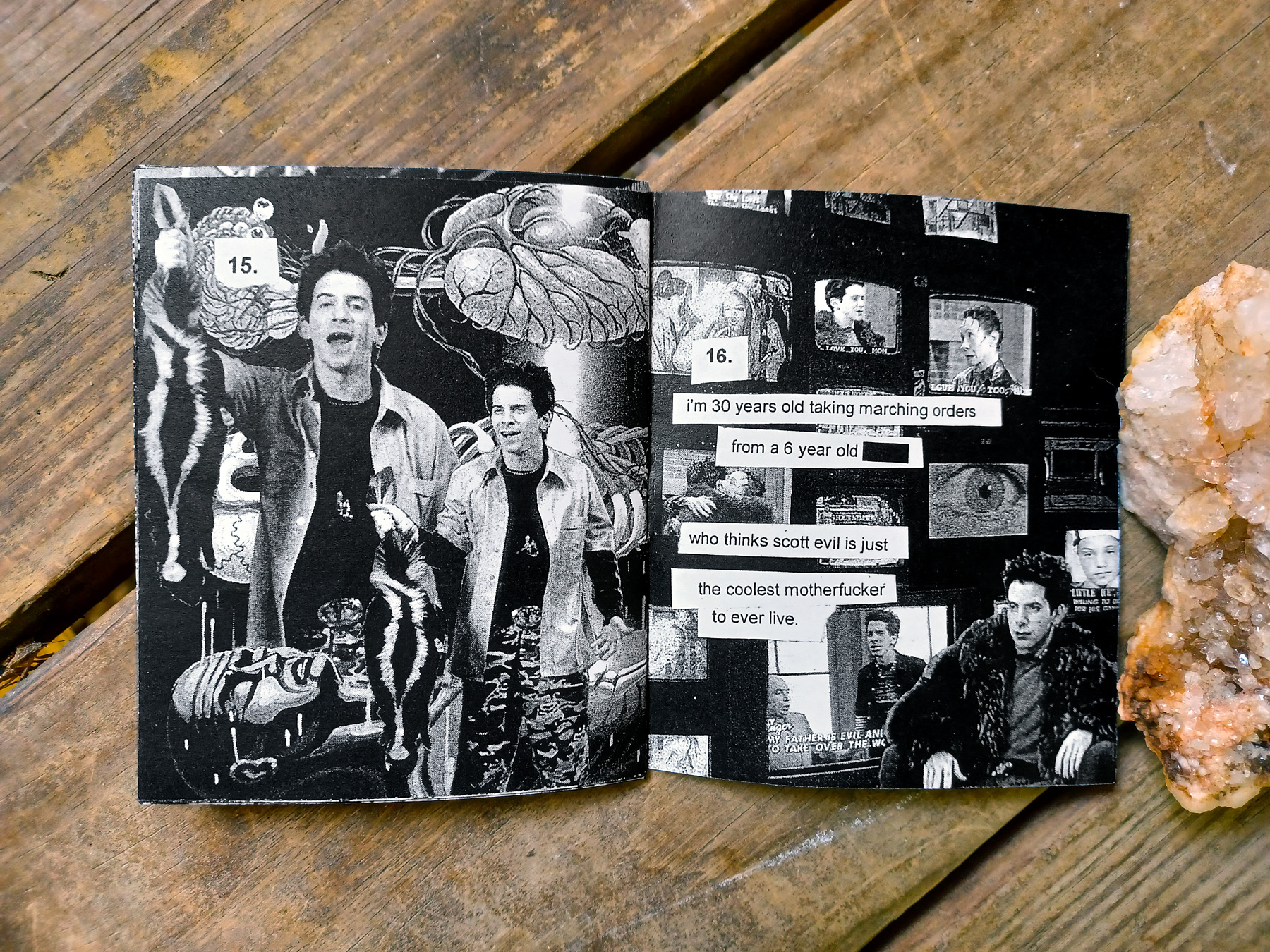 A 16-page mini about gender, growing up in the 90s, my goth cousins, and how Scott Evil transed my gender. I wish I could bottle up the vibes around my Formative Pop Culture Moments and other things that ruined me for life and pour you a nice glass of them to enjoy so you'd know exactly where I'm coming from, but for now this is the closest we're gonna get.