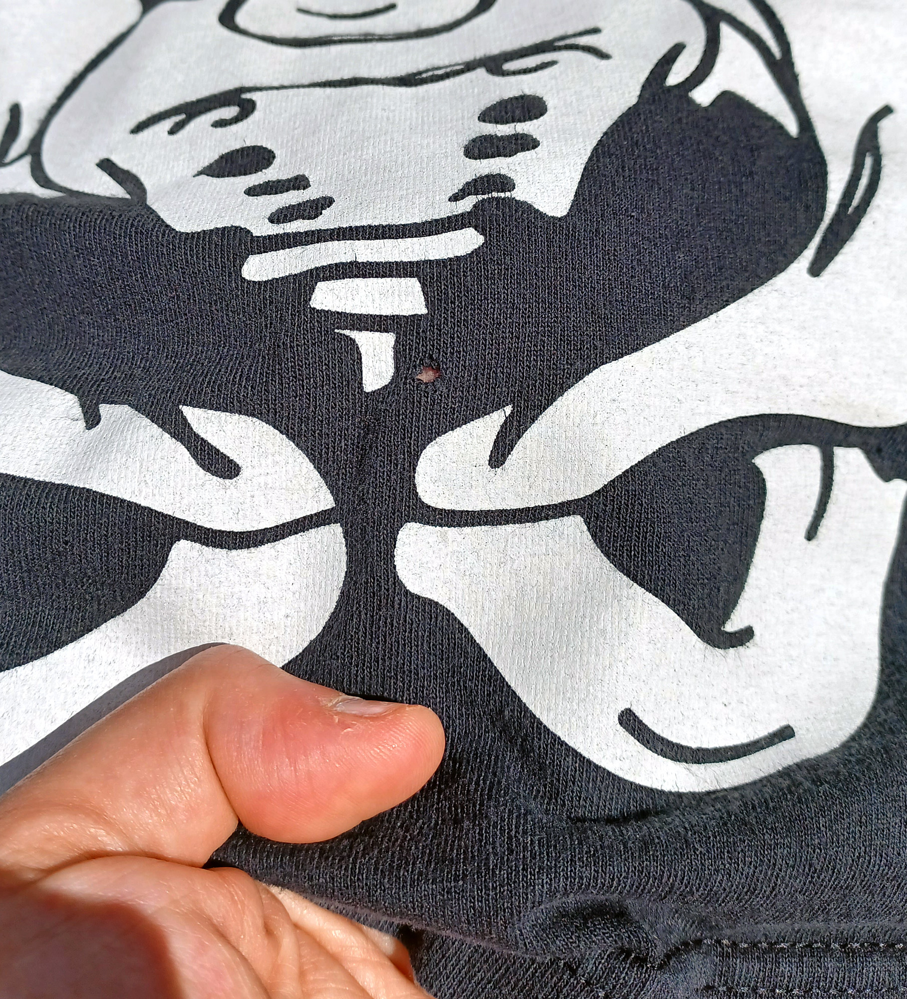 Classic, heavyweight skeleton tee with zero futzing around. You want bones? We got bones!!! If your torso happens to be the right length, the bones might even line up with your bones!! Neat!