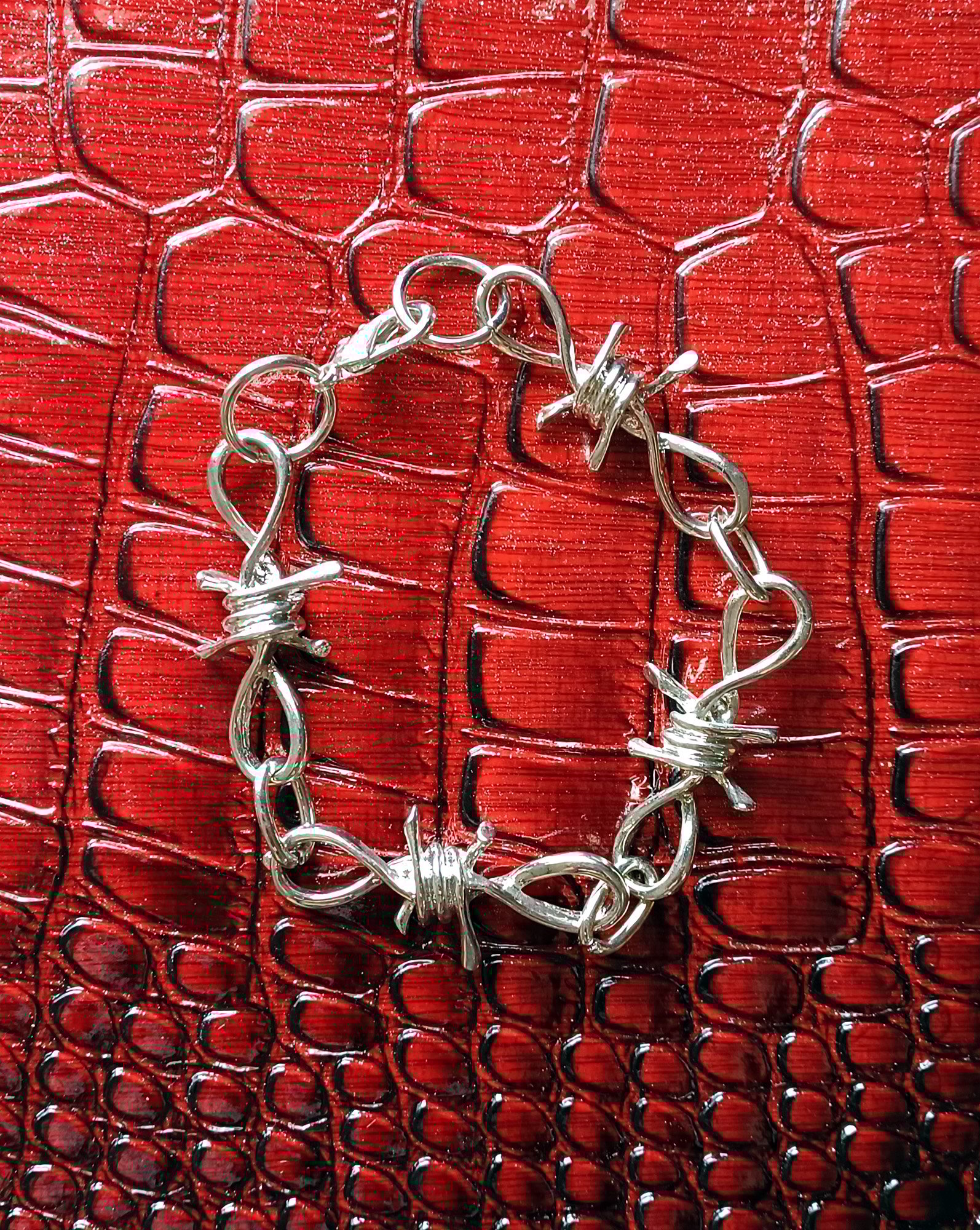 Super sick barbed wire bracelet!! Opens/closes with a chunky lobster clasp.