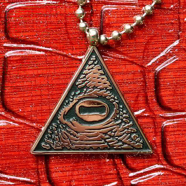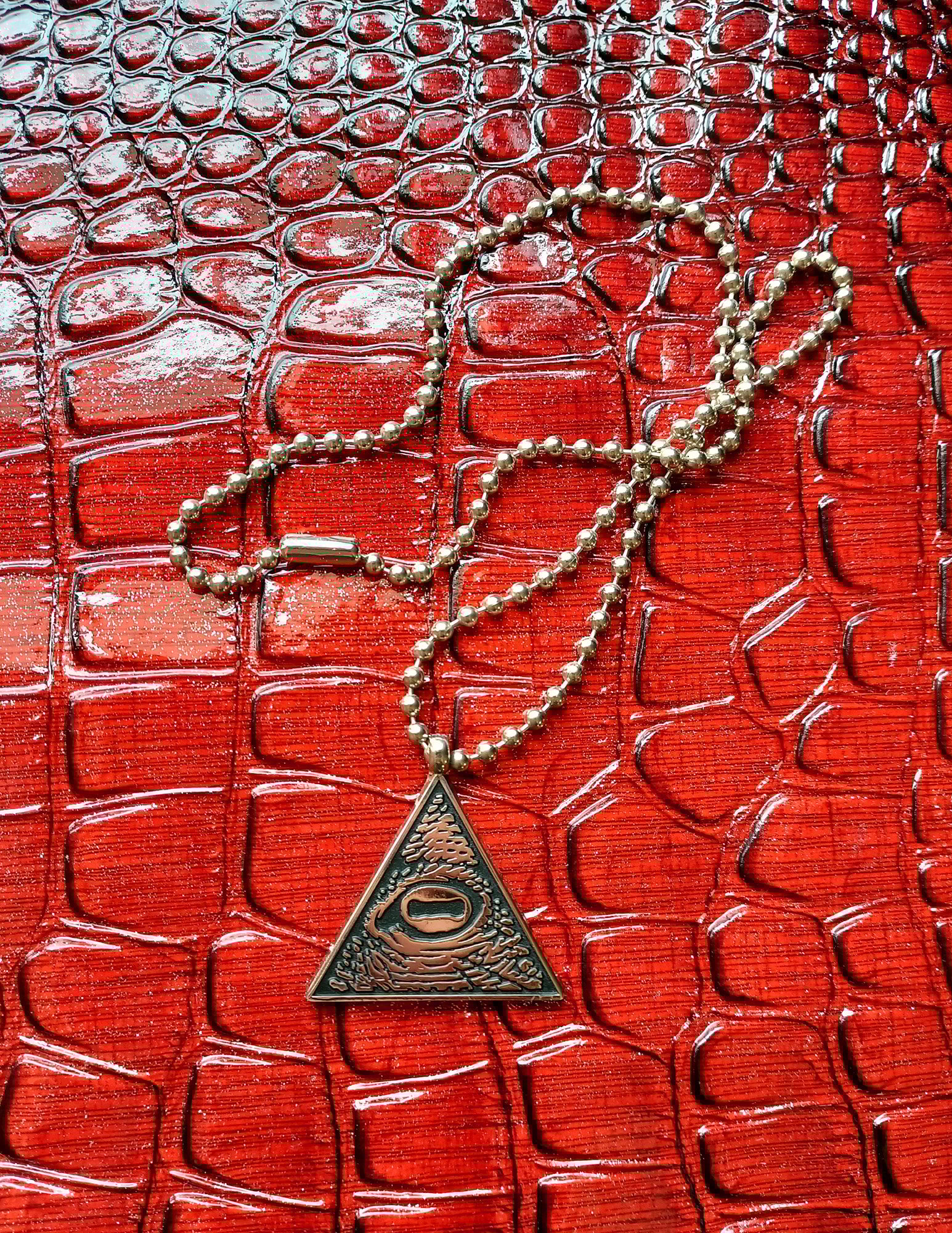All-seeing goat's eye pendant by Torvenius that got liberated from its original chain at some point & put on a ballchain (I live for the vibes, not for resale value). Black enamel inlay; artists' mark on back.