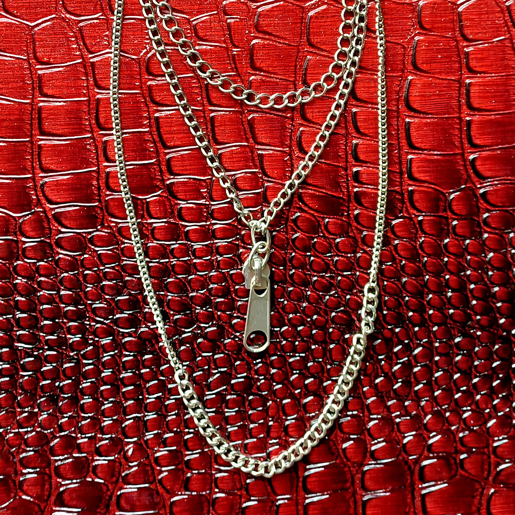 This necklace features not one, not two, but THREE layers of chain and a bonus zipper, all tied into one adjustable (16.5" - 19.5") chain with a lobster claw clasp so you don't have to mess around with all three in the back. Genius!