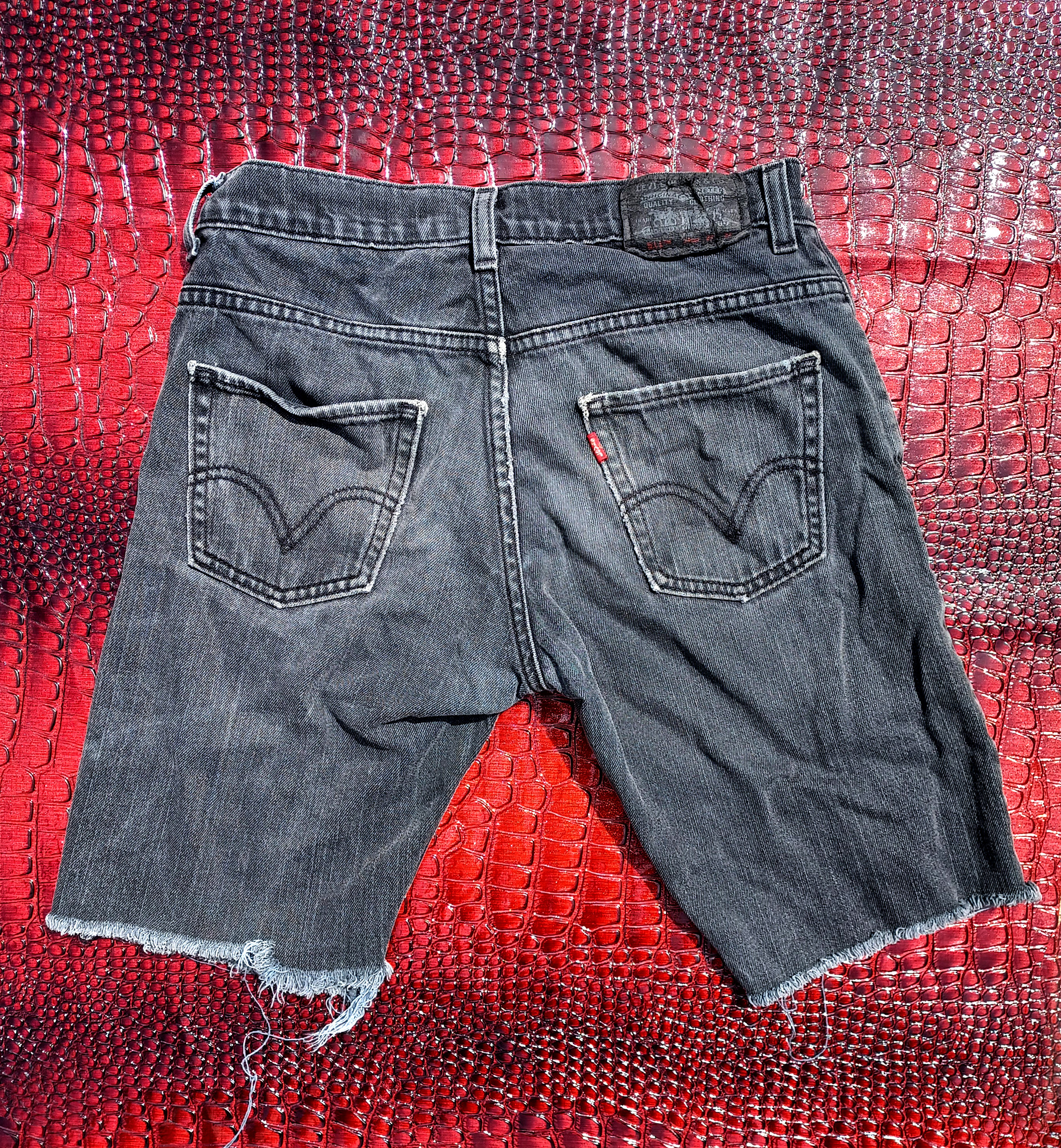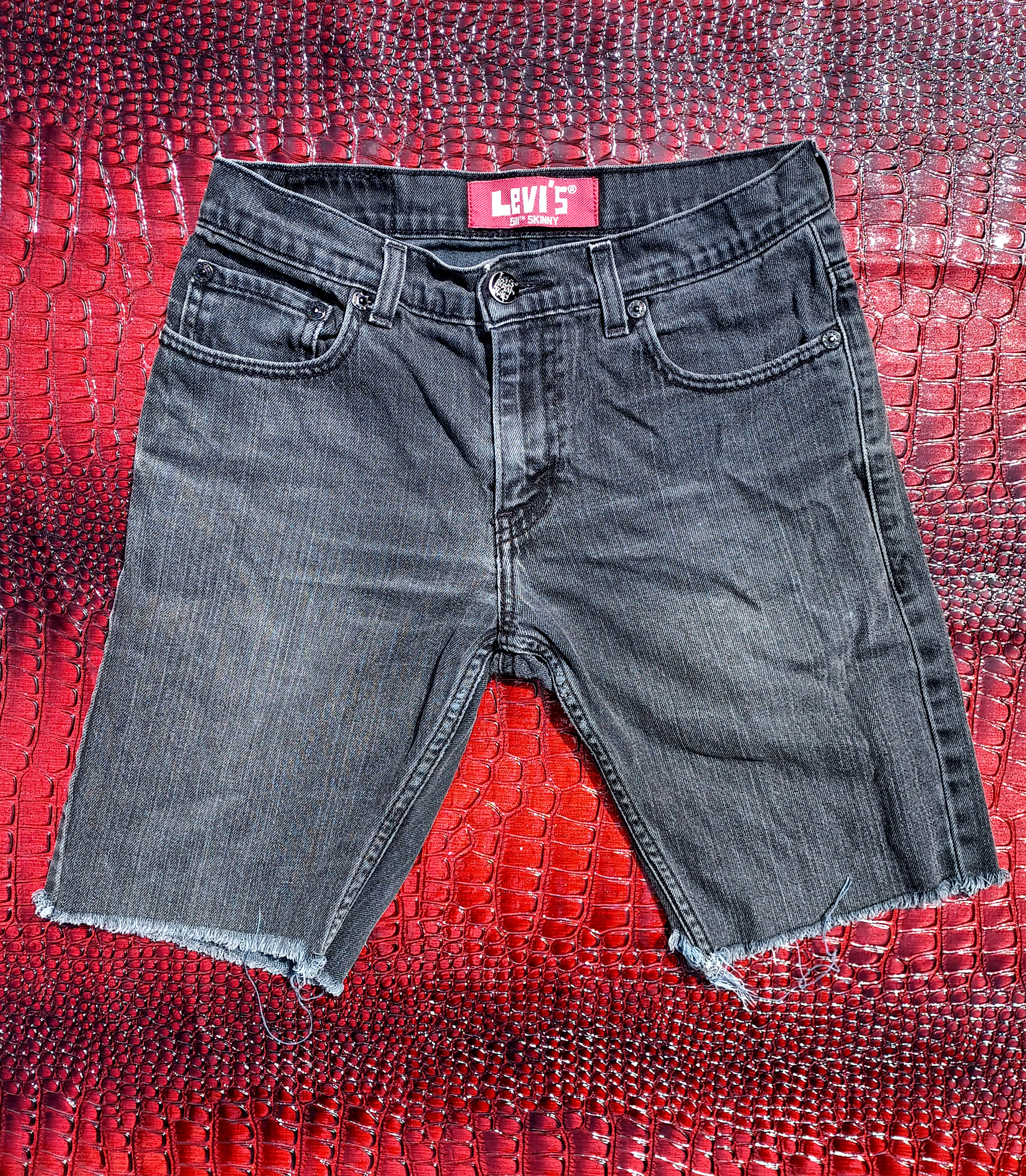 Thick black Levi's 511s that have been cut to perfect jort-length and washed soft & perfectly frayed. These are some SERIOUS denim for serious jort connoisseurs.