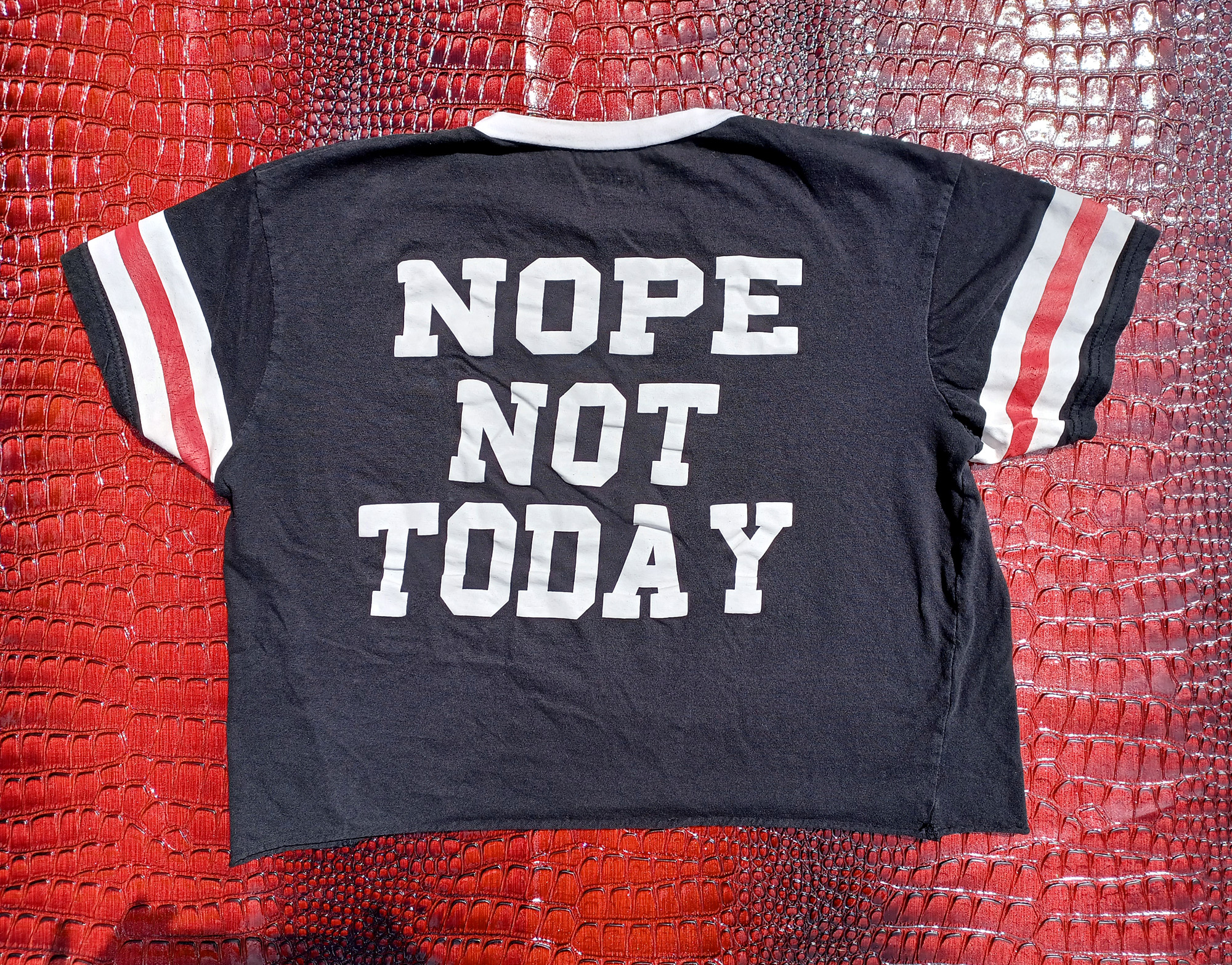 Let the world know today's not their day & tomorrow ain't looking good either with this athletic-style crop top that showcases exactly how we're all feeling. Ringer tee with screened arm stripes, small chest hit & full-size back print, coming at you PRE-CROPPED to take that stress off your plate.
